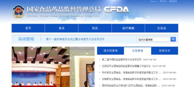 首先,點開國家食品藥品監督管理總局的官網http://www.sfda.gov.cn/WS01/CL0001/,可以看到右側有化妝品一欄。